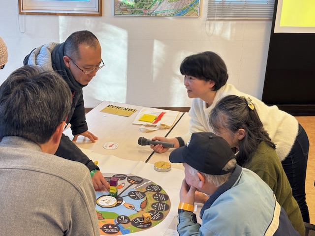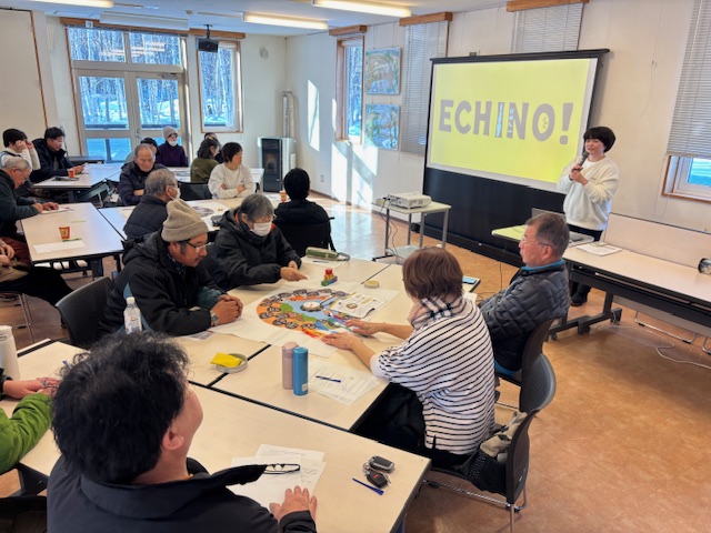 本イベントは、帯広市みどりの課が帯広の森の適正な利活用を促進する目的で企画・主催したものです。「帯広の森にすむキツネとエキノコックスのお話」と題して、主に餌付けの弊害やエキノコックス感染予防についてお話ししました。イベント後半では2023年度グラフィックデザイン実習の成果物であるボードゲーム「ECHINO!」のゲーム大会も実施しました。