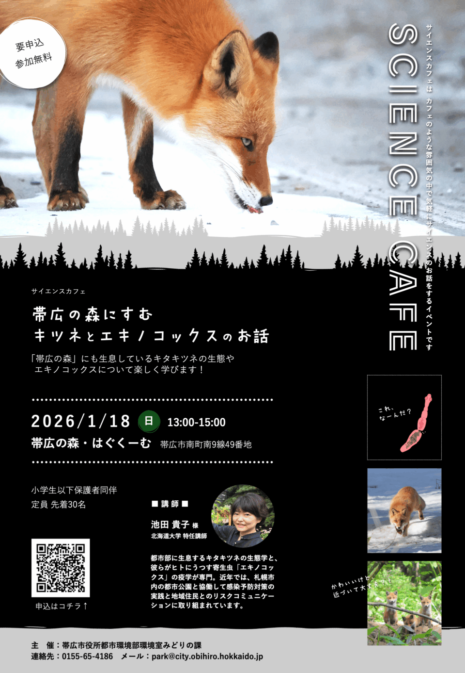 2026年1月18日、帯広の森・はぐくーむにてサイエンスカフェが開催され、スタッフの池田が登壇しました。