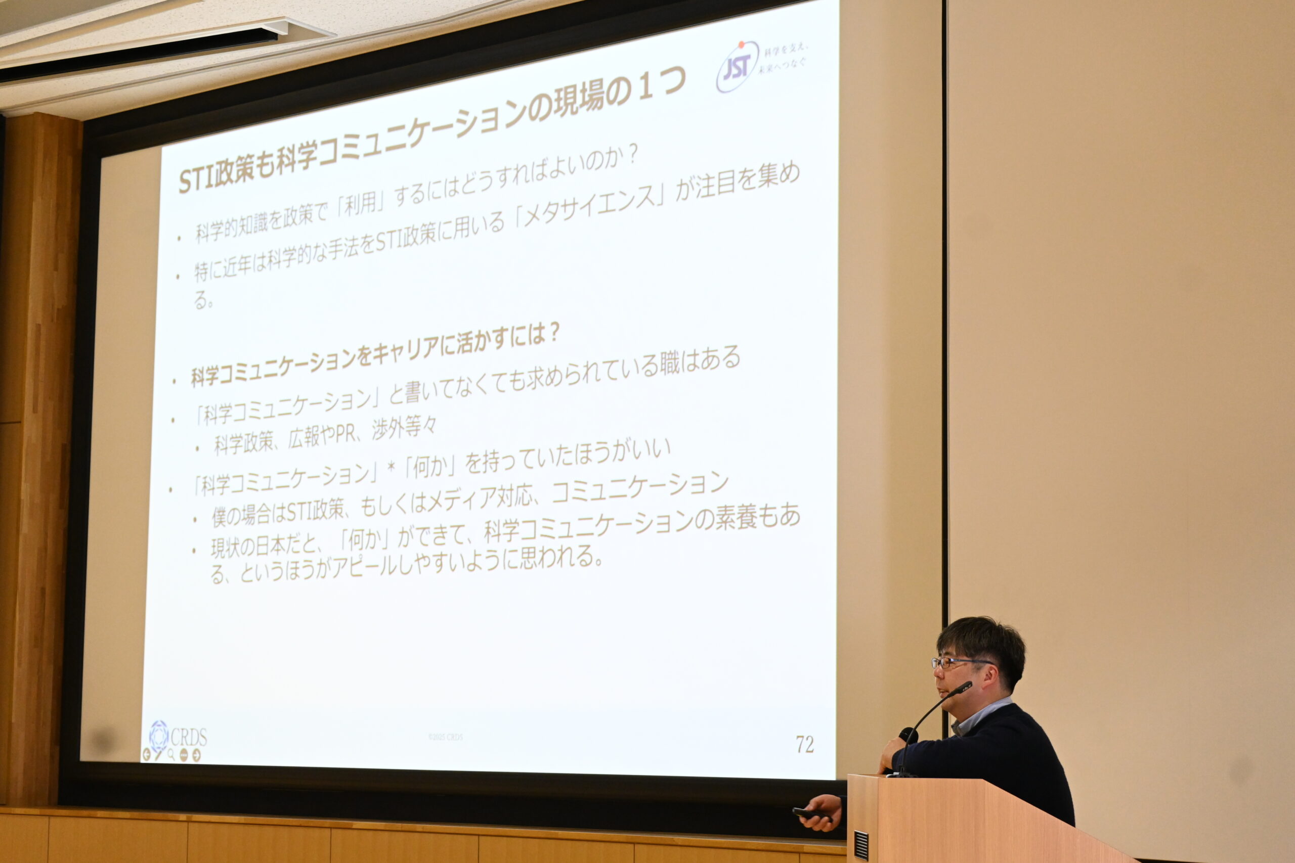 本講義は、科学技術コミュニケーションを「社会の理解と信頼を得るための活動」にとどめず、「研究知を政策に実装するための翻訳・媒介・制度設計」として捉え直す機会となった。