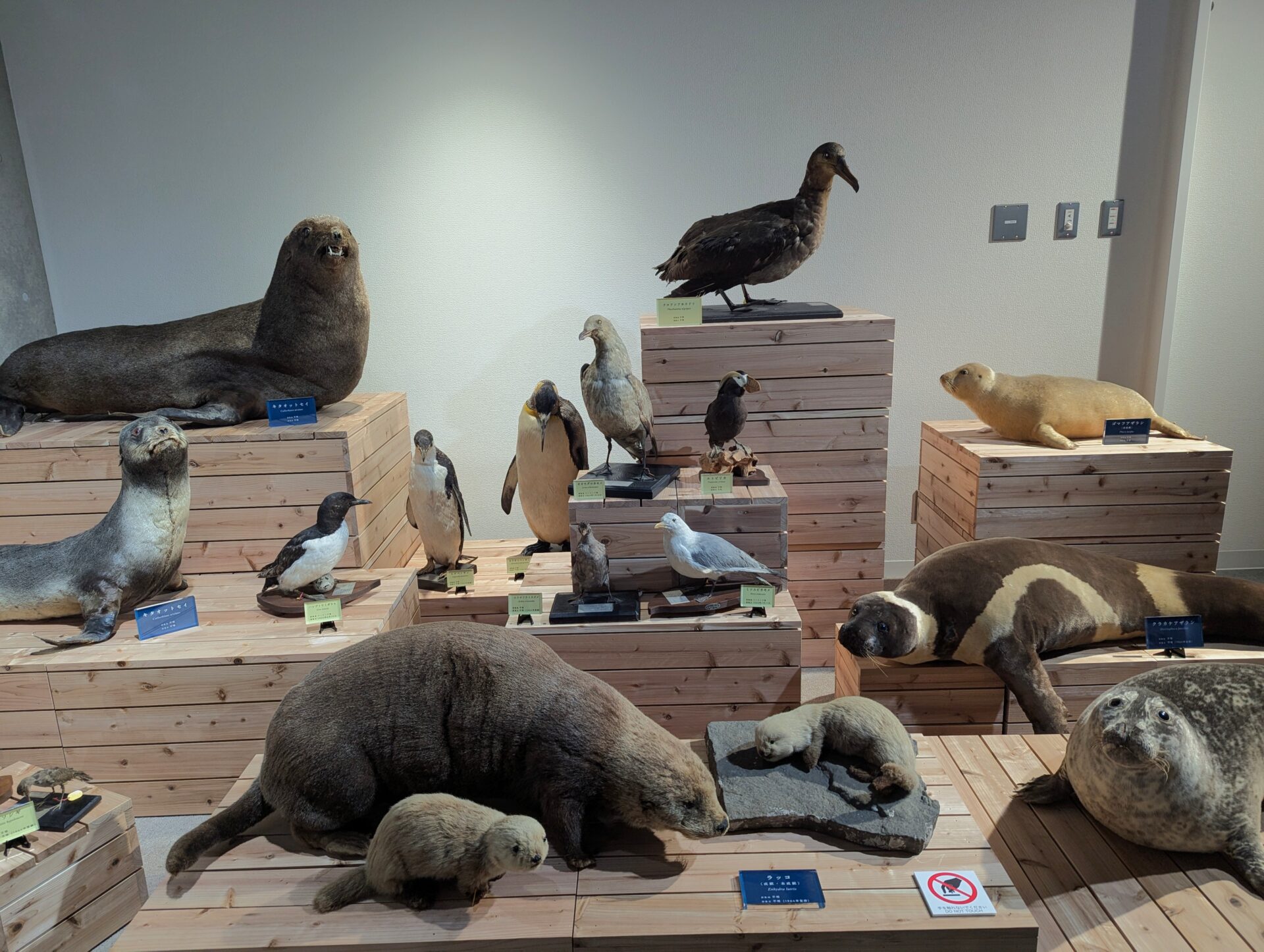 入館してすぐに見られるのが「剥製」のエリアです。セイウチなどの大きな海獣類の剥製から海に棲息する哺乳類や鳥類などさまざまな生き物の剥製が展示されています。