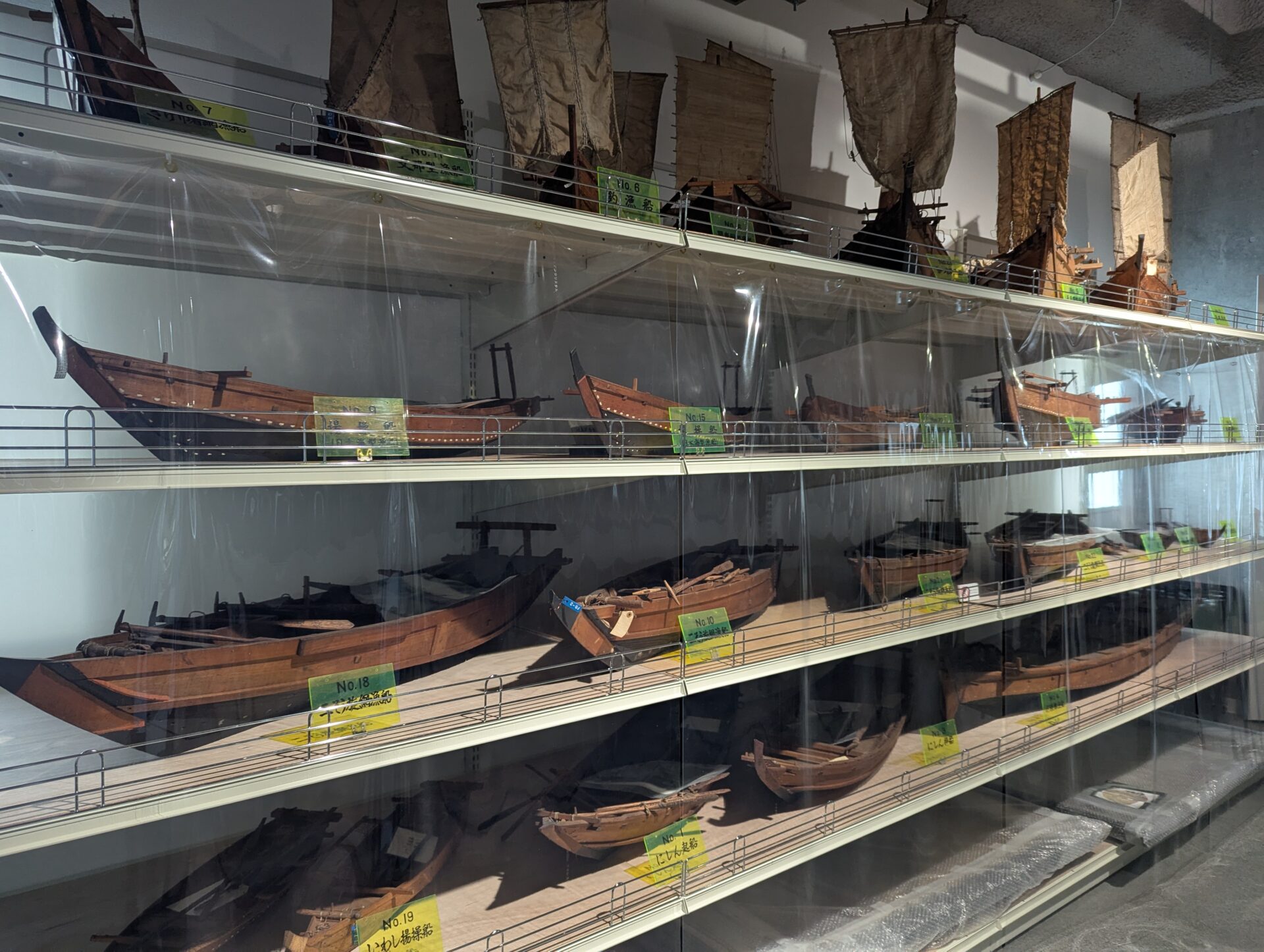 資料収蔵室では船にまつわる展示をご覧いただけます。漁船の模型や北大の附属練習船の資料が展示されています。資料収蔵室にも海の生き物を展示するスペースがあります。その他、肝油工場の模型など水産業にまつわる展示を幅広く取り扱っています。