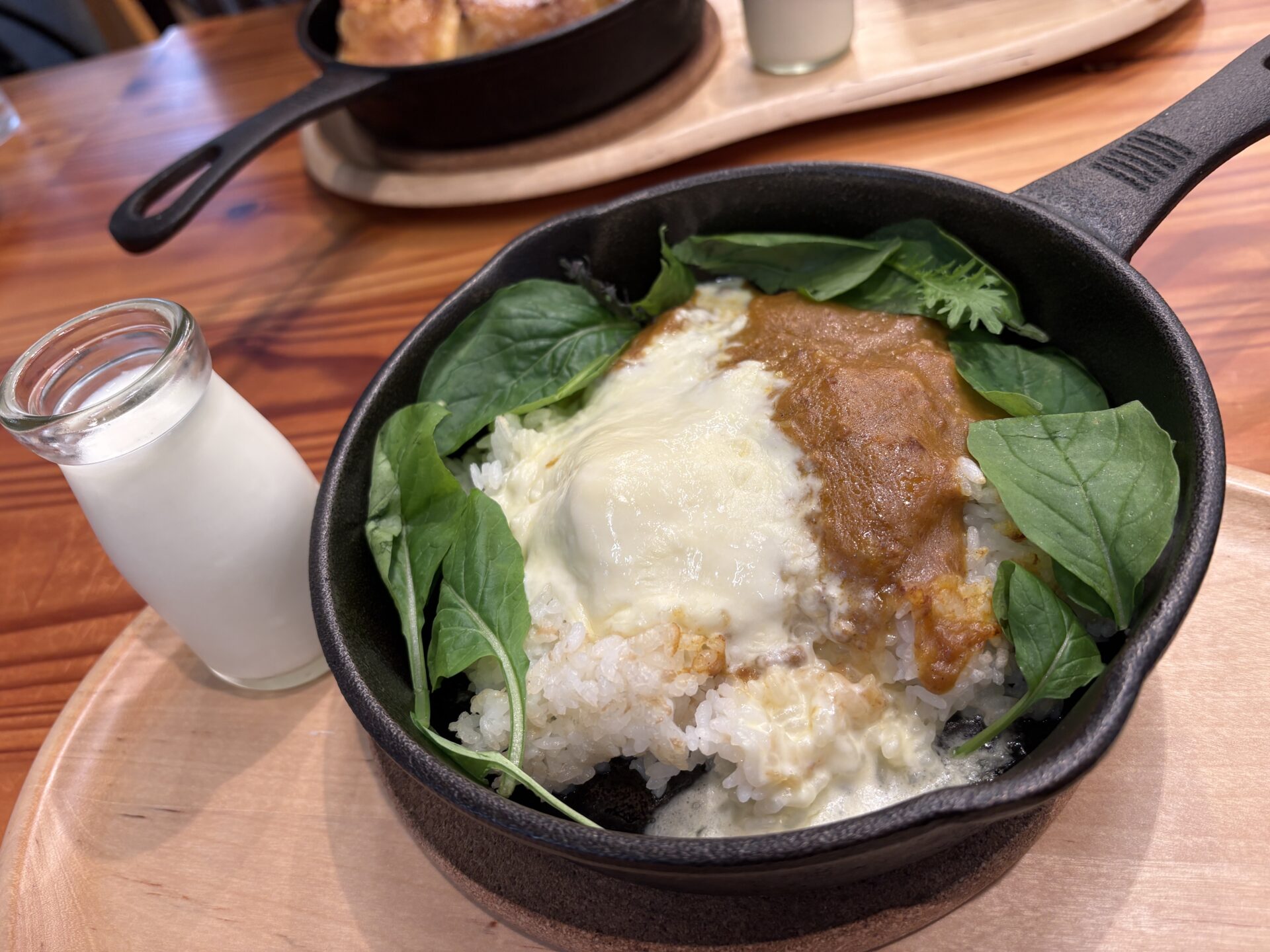 楽しみに待っていると…スキレットに入った見た目もかわいい焼きカレーが運ばれてきました。