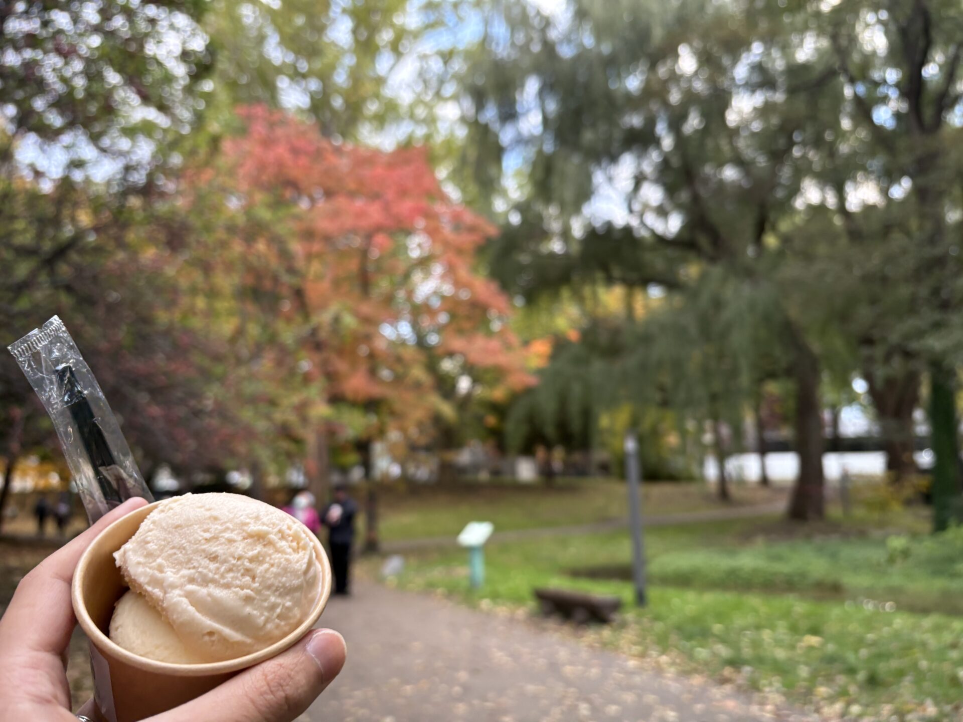 屋外で食べると、息を吸ったときに感じる草木の香りと、鼻に抜ける北大牛乳の風味を同時に楽しむことができました。