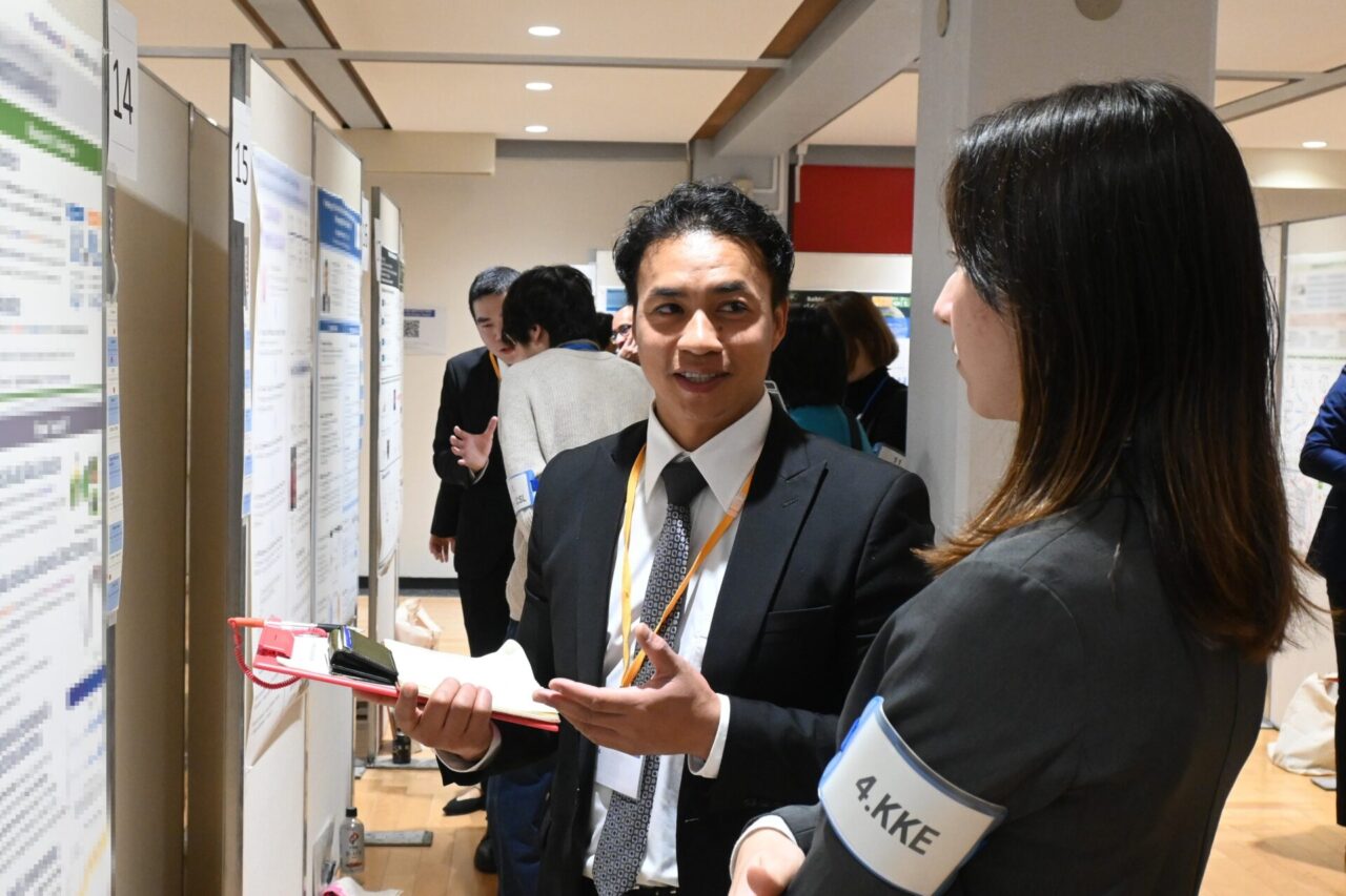 特に、「外国人博士によるポスター発表」では企業の方々を前に、外国人博士がポスターを使って研究と自分自身のスキルや日本の産業界で働く意欲をアピールし、直接意見を交換する時間となっています。