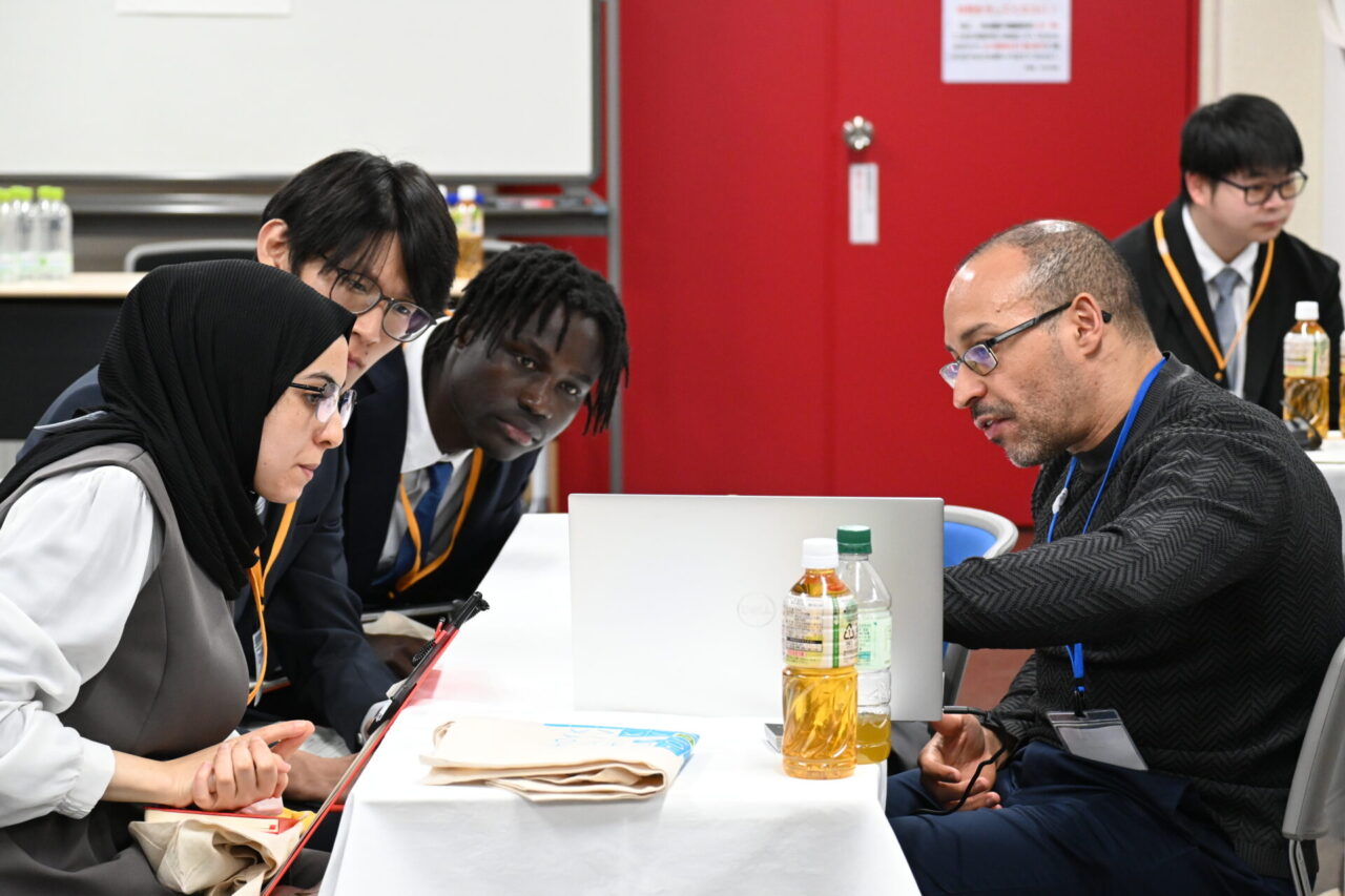 イベントに参加した外国人博士と意見交換をするデイビッドさん