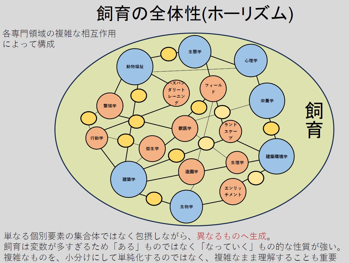(飼育は、温度や給餌といった個別技術の集合ではなく、多様な専門領域が相互に関係しながら生成していく「全体」として設計される)