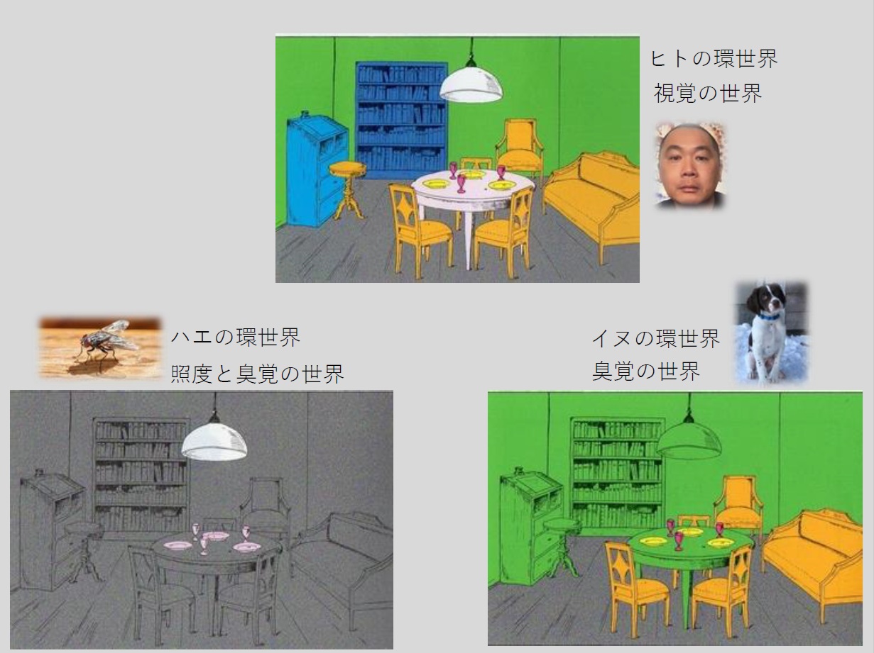 (相手の世界に立たなければ、正しい理解も適切なコミュニケーションも成立しない。環世界の違いは、飼育と科学技術コミュニケーションの共通原理を示している)<環世界の概念とその違いを示した図/出典:ユクスキュル『生物から見た世界』より>