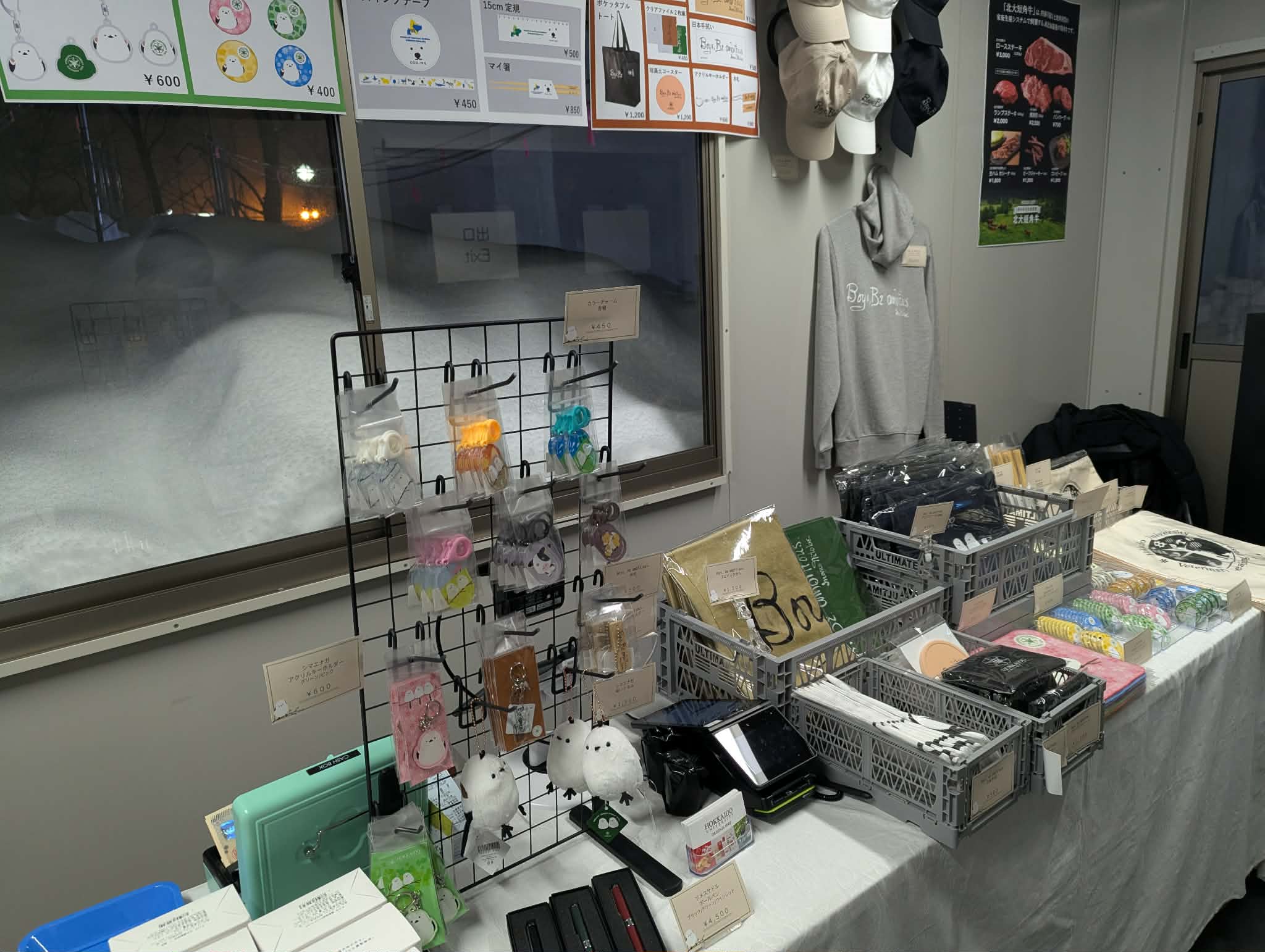 大雪像がある大通り7丁目会場では、「古河講堂の改修・利活用事業」の紹介をご覧いただける特設コーナーやかわいいキーホルダーやお菓子などの北大にまつわるグッズが買えるブースも準備されています。