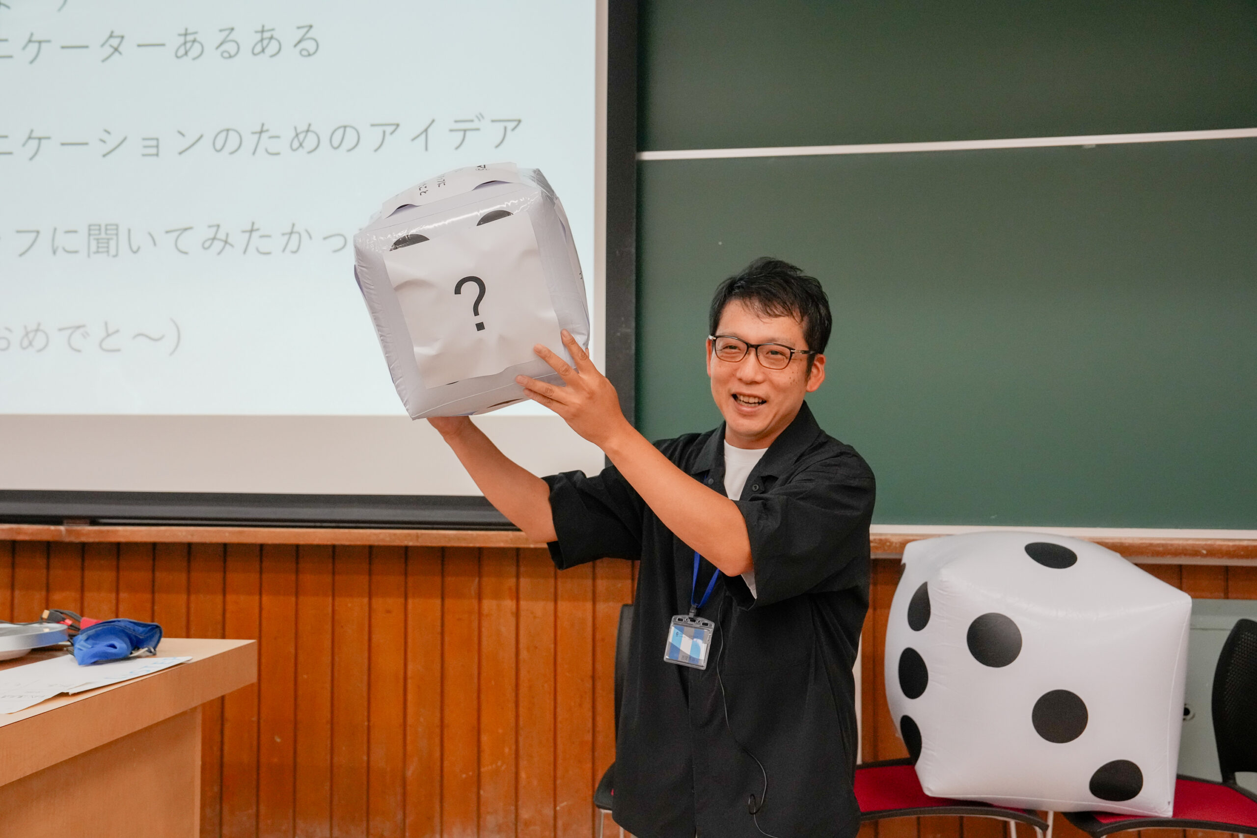 1つ目のCoSTEPフェロー 西尾直樹さんによる「にしおのごきげんよう!サイエンスコミュニケーターのあるある、言いた~い」では、ご参加の皆さまから集めた科学技術コミュニケーターならではのエピソードをもとに、西尾さんが懐かしのテレビ番組風に軽妙なトークを展開しました。