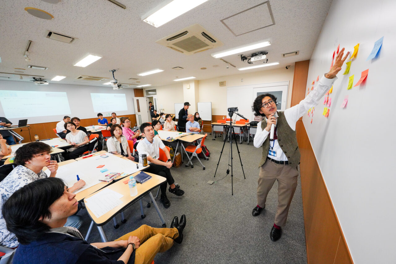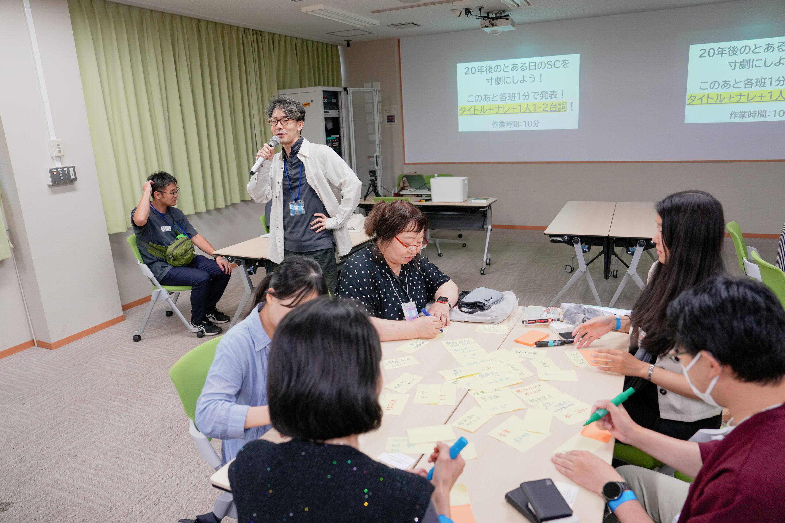同時進行で別の教室では宮本道人さんによる「SF for Science Communication:SFプロトタイピングで探るサイエンスコミュニケーションの未来」が開かれました。宮本さんが開発したSFプロトタイピングワークショップを使って、未来の科学技術コミュニケーションを広げます。