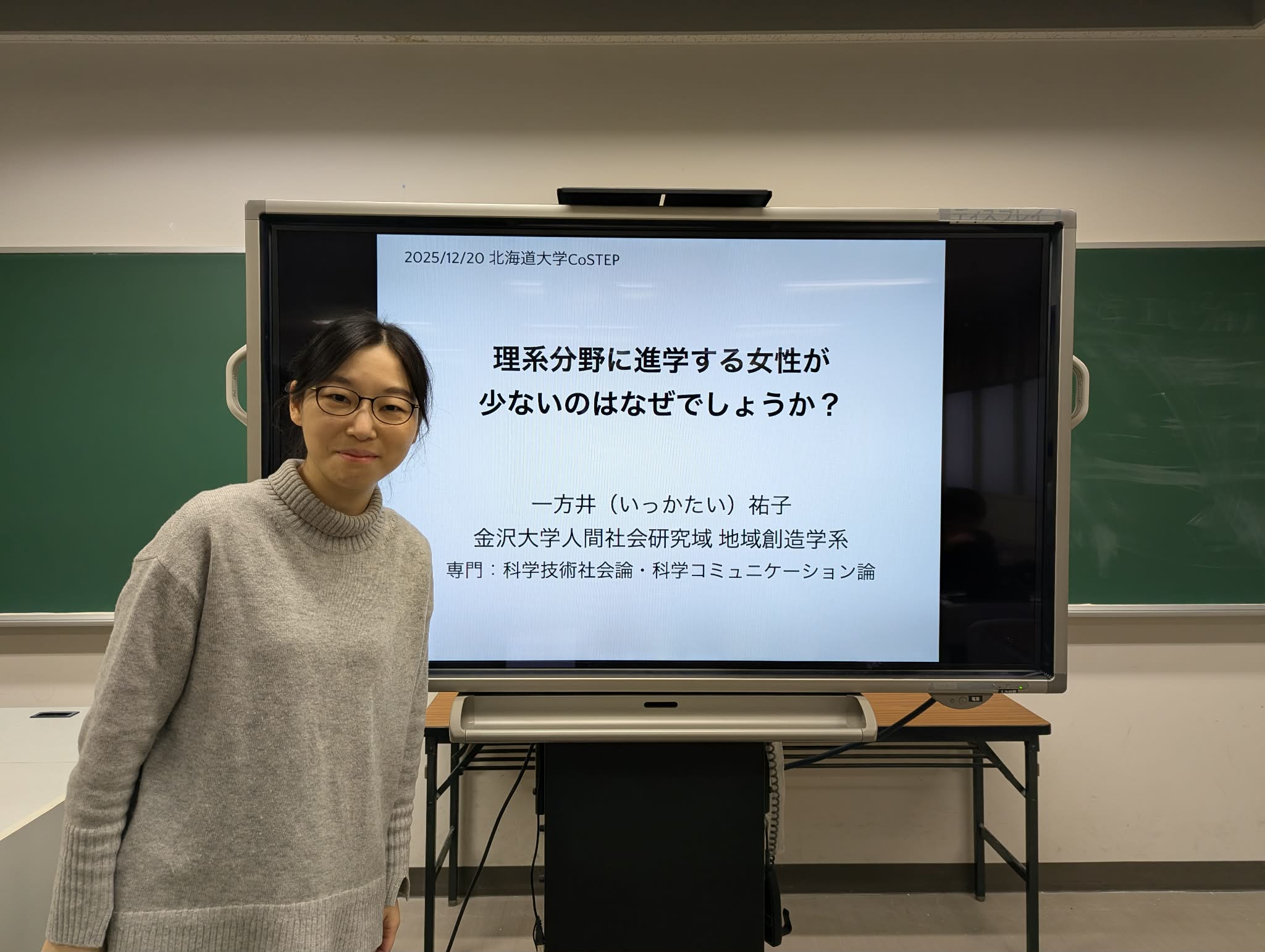 モジュール6「社会における実践」の第2回講義では、金沢大学人間社会研究域地域創造学系准教授であり、CoSTEP修了生でもある一方井祐子先生より、「理系分野におけるジェンダーギャップ」をテーマにご講義いただきました。豊富なデータに基づき、女性が理系分野において少数派である現状とその要因、そして改善に向けた取り組みについて、多角的に学ぶことができました。